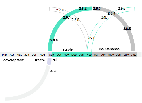 Additional stable (or maintenance releases) will use the next available version number. This does not disrupt the release schedule above. We expect volunteers to use common sense and collaborate rather than issue two releases during the same week.