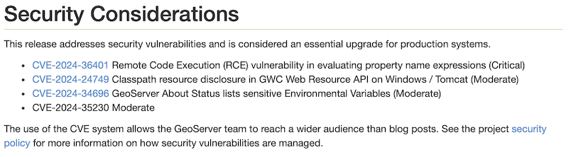 - A vulnerability flagged from a dependency scan does not automatically indicate that an exploit is available in GeoServer.