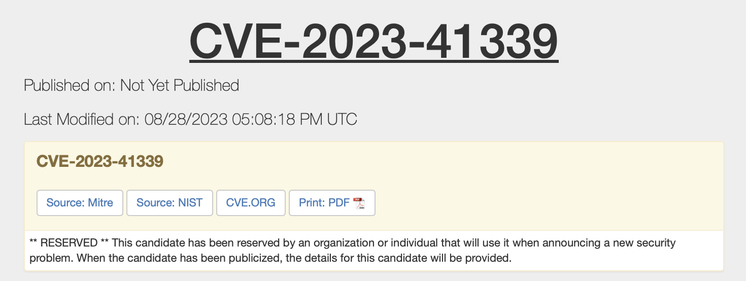 CVE-2023-41339 Not Yet Published