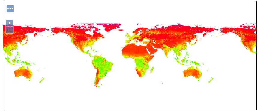 That MODIS data has 2 bands representing (Normalized Difference Vegetation Index) (NDVI) and Enhanced Vegetation Index (EVI). Let's add this ndvi.sld style to apply a proper colormap to the NDVI band (copy this content to a file named ndvi.sld to be used by the next REST call):