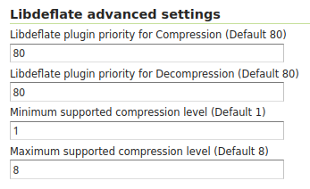 Default ZIP Deflater compression plugin has priority 50. Libdeflate compression plugin has default priority 80 for both compression and decompression. Is it possible to fallback to the old plugin for either compression, decompression or both. Go to the Global Settings and set the priority to a value lower than 50.
