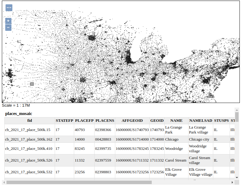 The delegate.shp shapefile can then be published as a store in GeoServer (no need to publish the layer), and then the mosaic store can be created, referencing to it: For example, let's say one downloads the TIGER shapefile for the PLACE theme, providing a shapefile with urban areas for each of the US states.