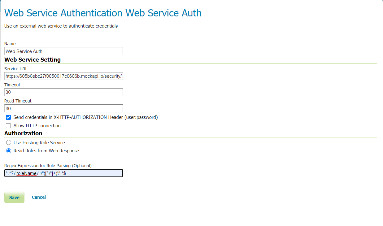 Read Roles from Web Responseis chosen, a regular expression to extract the roles from the authentication service response needs to be provided.