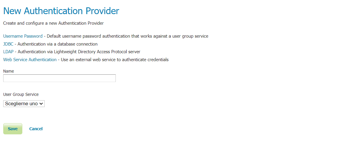 Allow HTTP connectioncheckbox if flagged will allow authentication request to be performed toward an external service that usesHTTPprotocol. By default onlyHTTPSis allowed. - In the