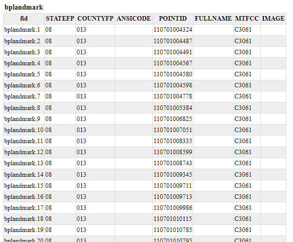 <#-- Header section of the GetFeatureInfo HTML output. Should have the <head> section, and a starter of the <body>. It is advised that eventual CSS uses a special class for featureInfo, since the generated HTML may blend with another page changing its aspect when using generic classes like td, tr, and so on. --> <html> <head> <title>GeoServer GetFeatureInfo output</title> </head> <style type="text/css"> table.featureInfo, table.featureInfo td, table.featureInfo th { border:1px solid #ddd; border-collapse:collapse; margin:0; padding:0; font-size: 90%; padding:.2em .1em; } table.featureInfo th{ padding:.2em .2em; text-transform:uppercase; font-weight:bold; background:#eee; } table.featureInfo td{ background:#fff; } table.featureInfo tr.odd td{ background:#eee; } table.featureInfo caption{ text-align:left; font-size:100%; font-weight:bold; text-transform:uppercase; padding:.2em .2em; } </style> <body> -