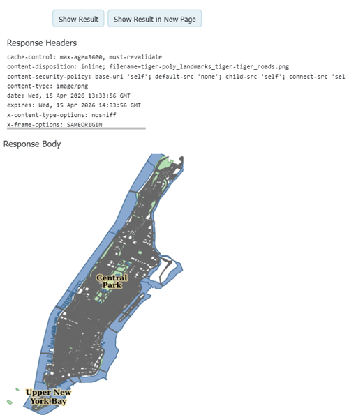 Headers and image response for a WMS GetMap request after pressing Show Result. (Demo Request WMS_getMap_multilayer.url)