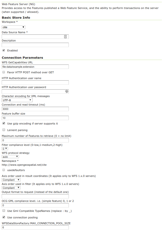 | Enabled | Enables the store. If disabled, no data from the external WFS will be served. |