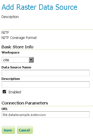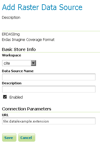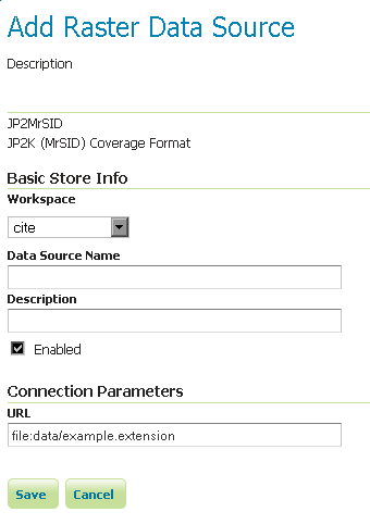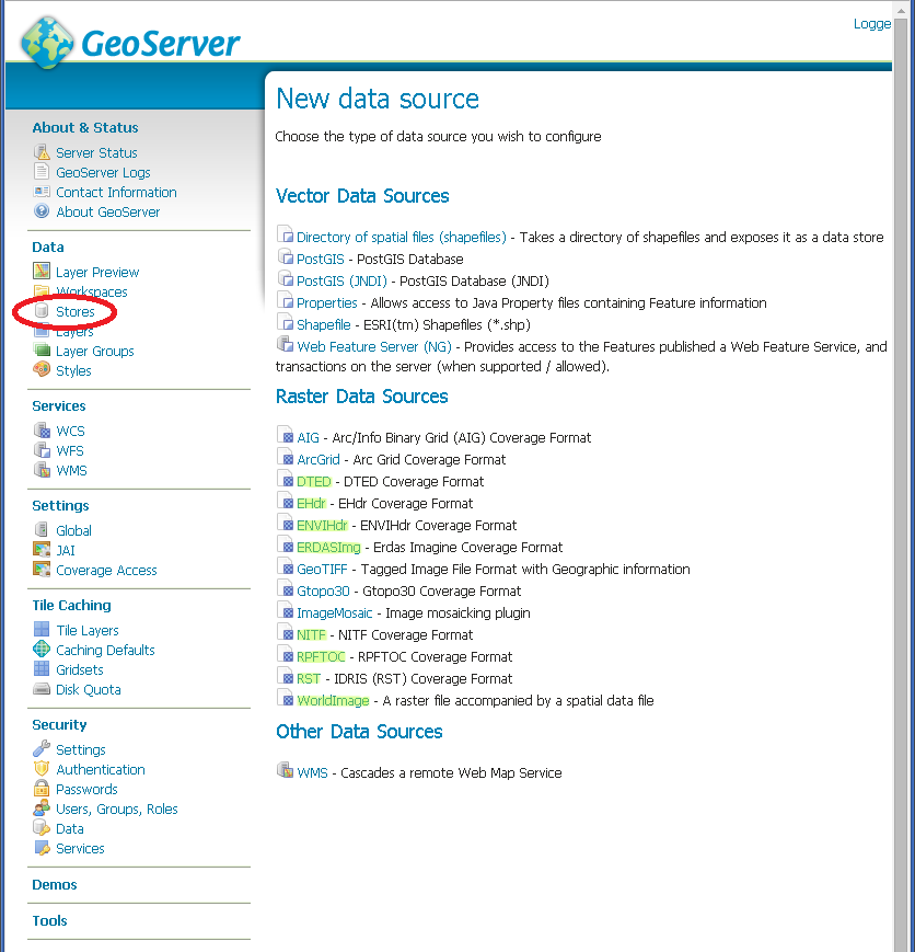 If all the steps have been performed correctly, new data formats will be in the Raster Data Sources list when creating a new data store in the Stores section as shown here below.