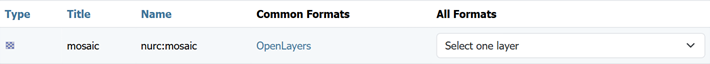 Each layer row consists of a type, name, title, and available formats for viewing.