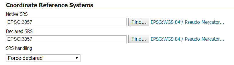 - Declared SRS---Specifies the coordinate system GeoServer publishes to clients