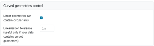 - Linearization tolerance controls how accurately the linearized version of geometries matches the original circular version of them. The tolerance can be expressed as an absolute number in the native unit of measure of the data, or it can be expressed in meters or feet using the "m" and "ft" suffixes (such as "10m" or "15ft").