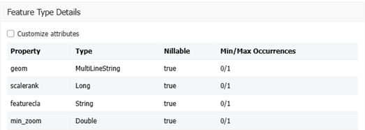- Native SRS---Specifies the coordinate system the layer is stored in. Clicking the projection link displays a description of the SRS.