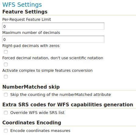 Encode coordinates measures---Checking this setting will cause coordinates measures ("M") to be encoded in WFS output formats that support measures. The default (not checked) is to not encode coordinates measures.