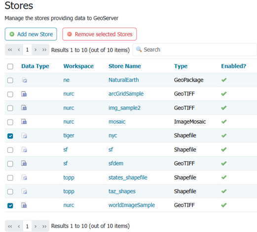 - Enabled - enables or disables access to the store, along with all datasets defined for it