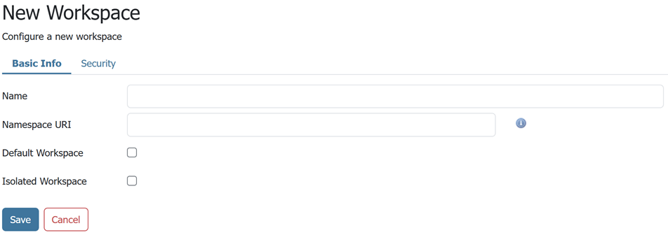 A workspace is defined by a name and a Namespace URI (Uniform Resource Identifier).