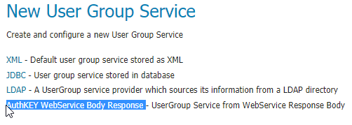 In order to do this, it is possible to configure instances of AuthKEY WebService Body Response User Group Service.