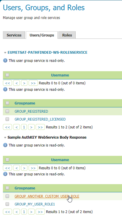 Role Servicespecified, theUserGroup Servicewill use theGeoServer Active Role Serviceto resolveGeoServer User RolesfromGeoServer User Groups- as specified above -