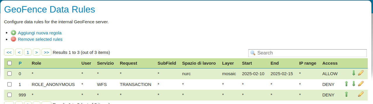 Rule priority order can be easily on this page through the up and down arrows on the right side. Rules can be modified using the pencil symbol, which opens the rule page.