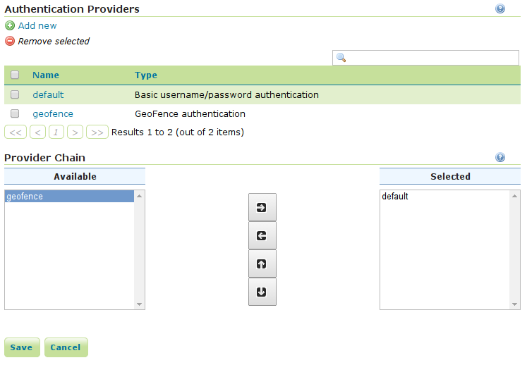 - In the security panel you'll find the GeoFence link to the GeoFence security admin page