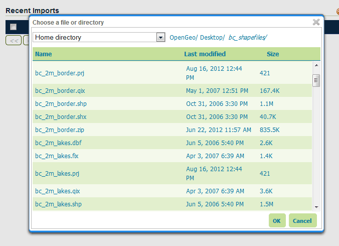 File chooser for selecting spatial files