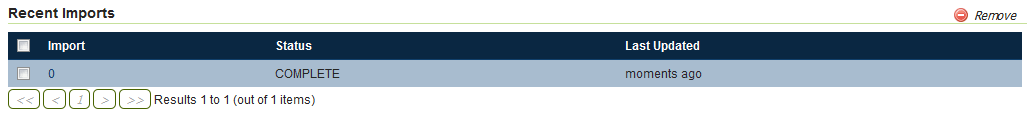 This section will list previous imports, and whether they were successful or not. Items can be removed from this list with the Remove button, but otherwise cannot be edited.