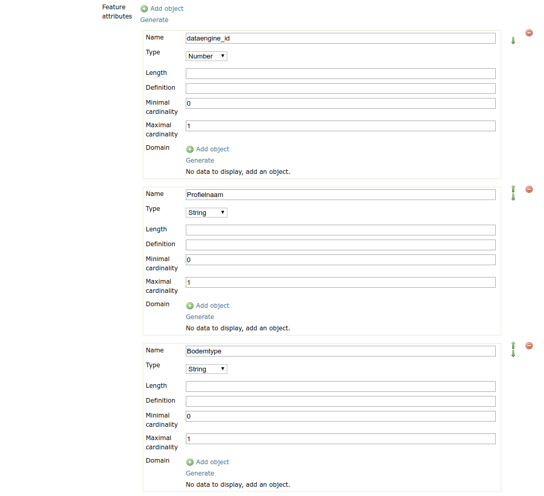 To create a feature catalog for a vector layer, a complex structure is needed to describe all the attributes. A lot of this information is already present in the GeoServer feature type or the database. Metadata supports automatically generating a new structure in the metadata from the information at hands that can be customised afterwards. To create support for this feature in your configuration, define a repeatable COMPLEX field with built-in fieldType featureAttribute .