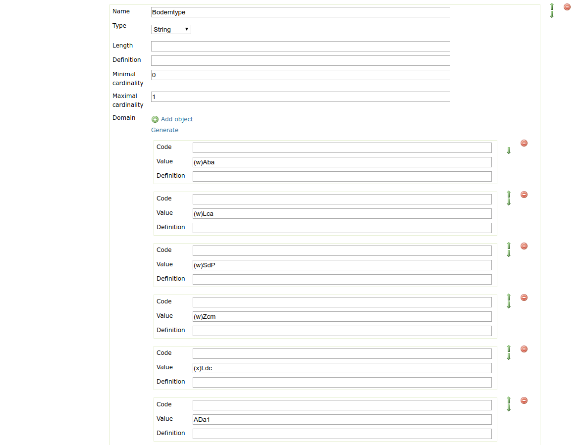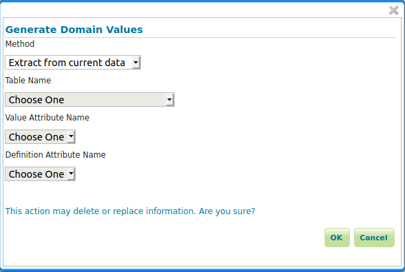 - Using data from a look-up table in the same database. In this case you must specify the table, an attribute from which to take values and an attribute from which to take definitions.