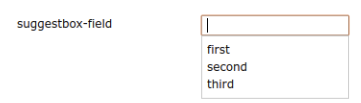 This type is identical to suggestbox, except that the user is not allowed to fill in a custom value but enforced to choose a suggested value. This can be handy when an field value must be an element from a list, but this list is too long for a dropdown to be practical.