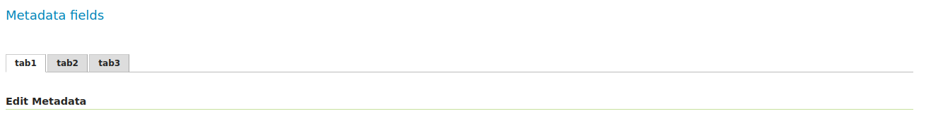 Optionally, attributes may be displayed on separate tabs. All tabs must be listed under tabs in the main configuration. Then this property is used to assign each attribute to one or more tab (separated by comma), so that the custom metadata panel is divided in tabs: