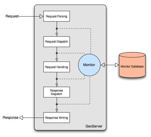 As a request is processed the monitor inserts itself at particular points in the request life cycle to capture various information about the request. Such information includes:
