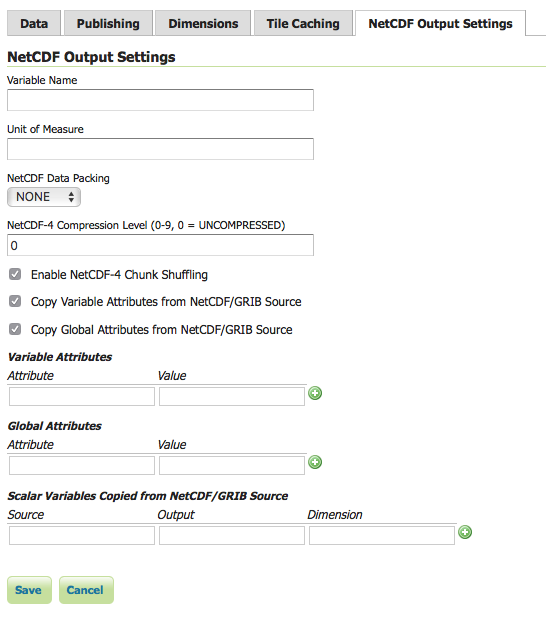 NetCDF output settings can be configured for each raster layer. The similar section in the Global Settings page configures the default settings used for newly created raster layers.