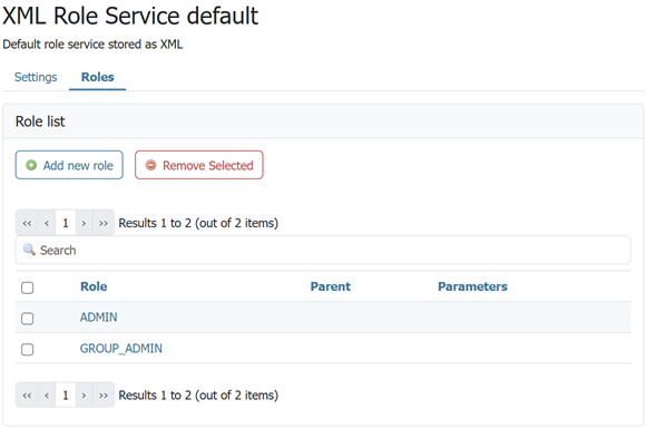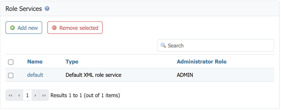 Once the new role service is added (either XML or JDBC), clicking it in the list of role services will allow the additional options to be specified, such as the roles associated with the service.