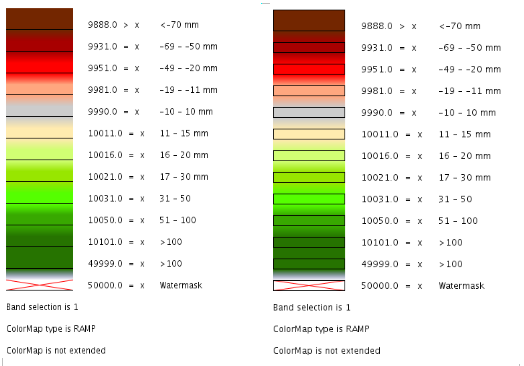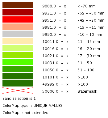 Take as an instance one of the SLD files attached to this page, each row in the above table draws its essence from the ColorMapEntry element as shown here below: