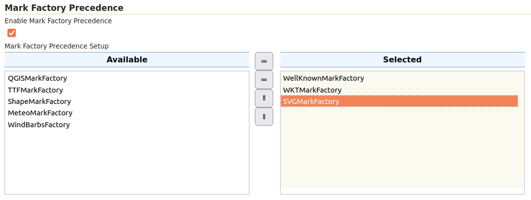 Mark Factory Precedence setup -The allowed mark factories to use and its execution order.