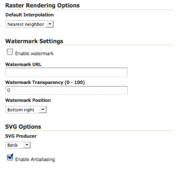 - Batik -Batik renderer (as it uses the Batik SVG Framework). It has full support for SLD styling, but is slower.